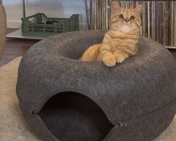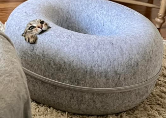 Legowisko wykonane jest z grubego filcu, który jest naturalnie atrakcyjny dla kotów do wbijania pazurków i pomaga chronić domowe meble przed zniszczeniem.
